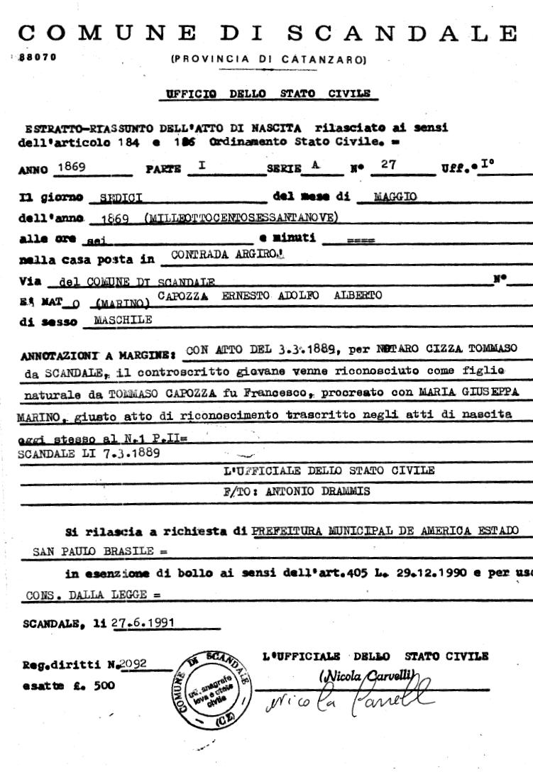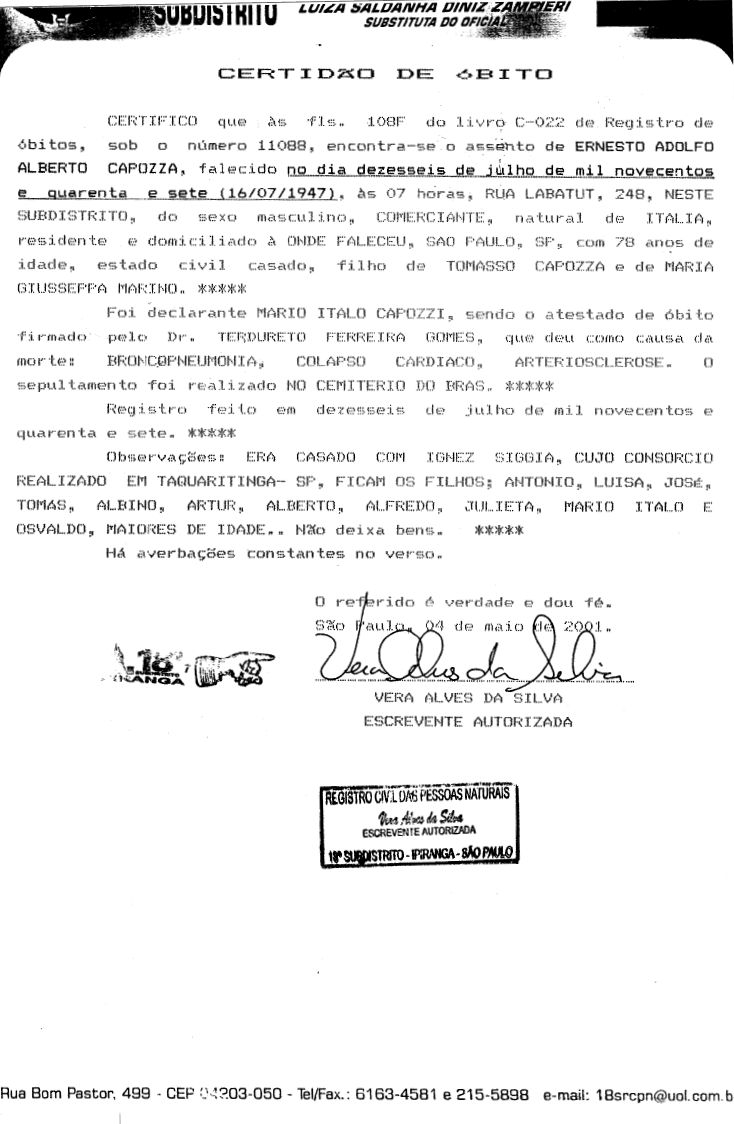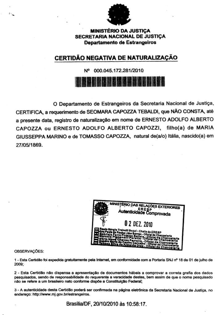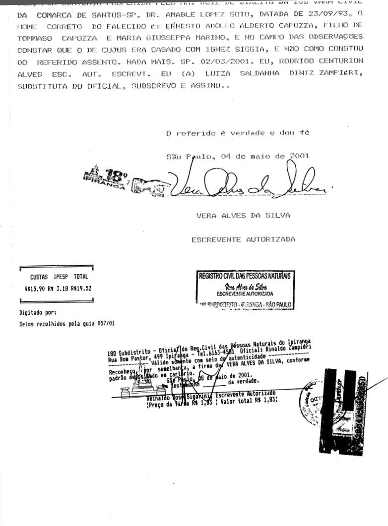Documentos nos presenteados pela prima Seomara Capozzi Tebaldi