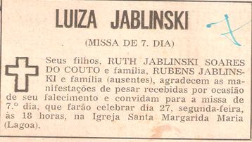 Luiza Jablinski (nascida Capozzi) *12.01.1902 +21.01.1975